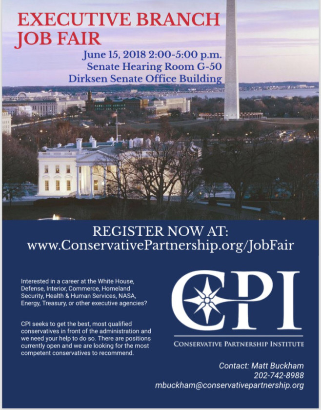 “CPI’s mission is to support conservatives in Washington and we are excited about giving hundreds of qualified, experienced conservatives an opportunity to meet with Trump administration officials and learn about career opportunities,” Rachel Bovard, senior policy director at Conservative Partnership said in an email.