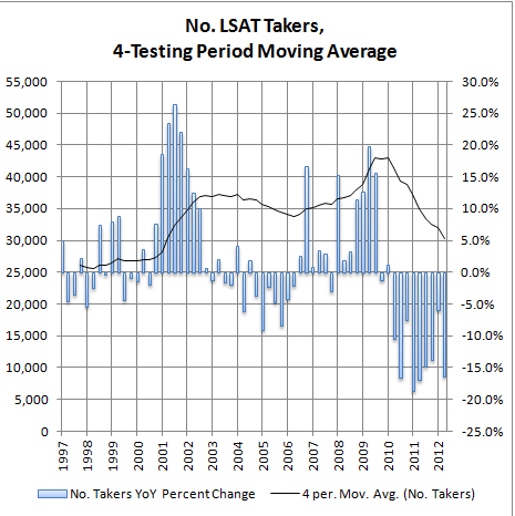 good point, James. The number of LSAT takers has dropped sharply, more sharply than the number of admissions, I believe.