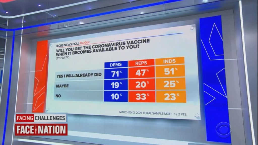 Likewise, a lot of Democrats are following their leaders (and, also, engaging in negative partisanship because they are so set on rejecting Trump that they are likely more prone to take the vaccine).