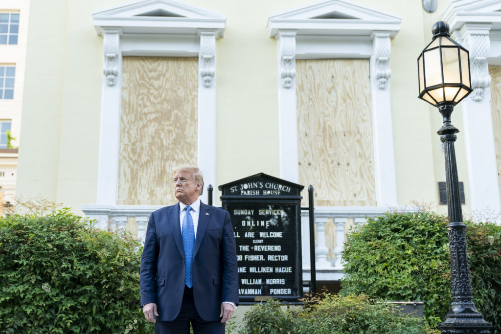 Trump walked to St. John’s Church, which had been damaged the day before during protests over racial injustice. As he did, law enforcement violently cleared what had been mostly peaceful protesters in Lafayette Park.