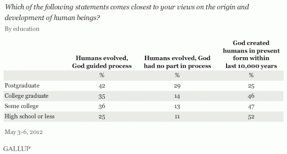 And, there’s a high correlation between education and one’s opinion on evolution: