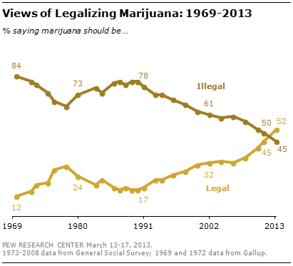 This chart shows just how much public attitudes regarding marijuana have changed in my lifetime: