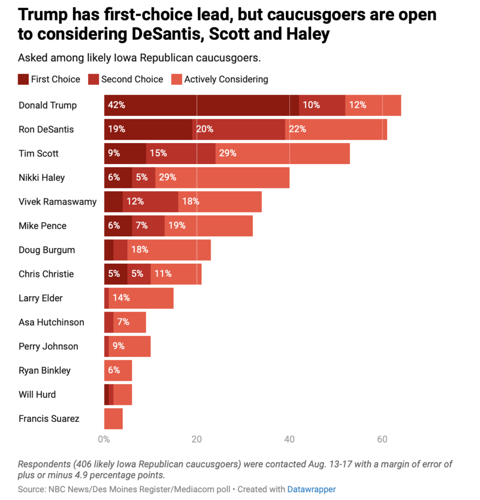 NBC News declares that an Iowa poll shows GOP divide over Trump’s remaining party leader. Sounds dramatic! It made me click, after all. But like so many attempts to suggest (like the Younkin rumblings) that there is some drama in the GOP primaries, it really is a story that is desperate to be a story more than anything else.