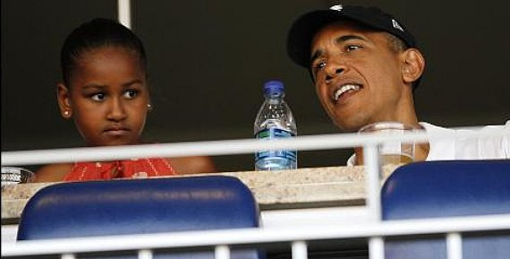 Last night President Obama and a few family members attended the Nationals-White Sox game in Washington: