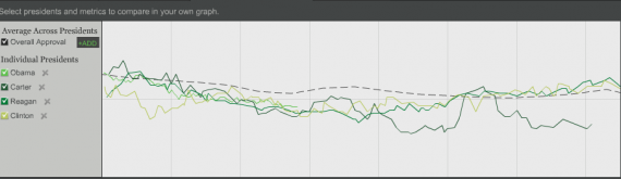While it’s certainly possible that Barack Obama will be a one term President, it’s simply a wild-guess for anyone to say today that they know with certainty that he won’t be re-elected in November 2012. After all, even with the state of the economy, his approval numbers remain in the mid-to-high 40s and, as Gallup’s very informative Presidential Job Approval Center tools show, his approval numbers are higher at this point then either Carter’s, Reagan’s, or Clinton’s at comparable points in their Presidencies: