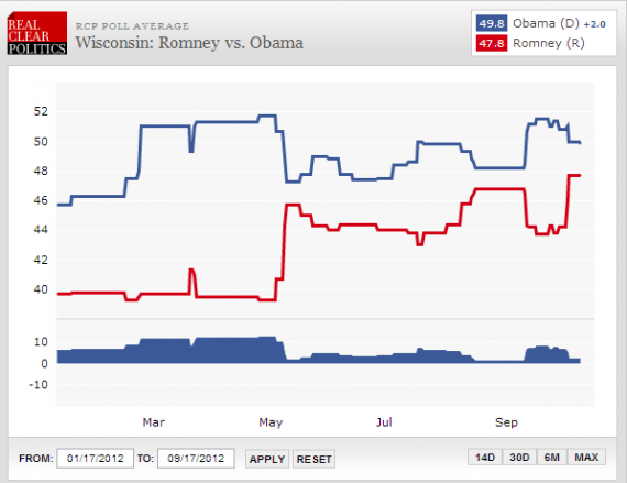 Only two polls–both robopolls from mid-August–have shown Romney leading in WI. And those showed him a scant +1.