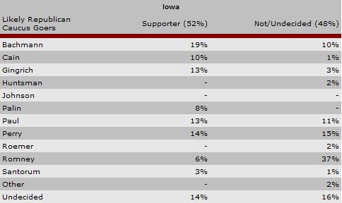 Previous polls of likely Iowa caucus goers had Michelle Bachmann, and then Rick Perry in the lead but a new poll from American Research Group has some very interesting results: