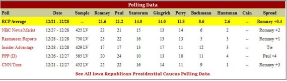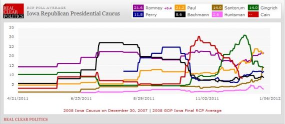 Romney, Paul At Top In Iowa; Santorum, Gingrich, Perry Splitting Conservative Vote