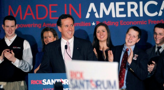 “We did it again,” Mr. Santorum said, addressing jubilant supporters in Louisiana, which holds its Republican primary next week. “The time is now for conservatives to pull together.”