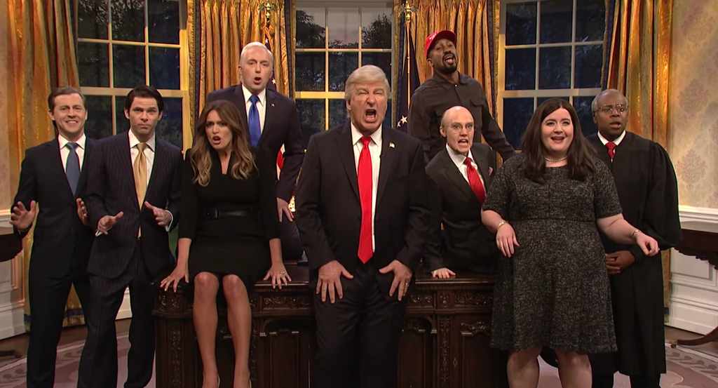 There were further cameos from Chris Redd as Kanye West, Kenan Thompson as Justice Clarence Thomas, Kate McKinnon as Commerce Secretary Wilbur Ross, Mikey Day as Donald Trump Jr. and Alex Moffat as Eric Trump. (When he was told that he was allowed to sing as well, Moffat performed a verse of the “Muppet Show” theme song.)