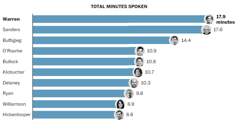 UPDATE: When all was said and done, Warren actually slightly edged Sanders for total speaking time.