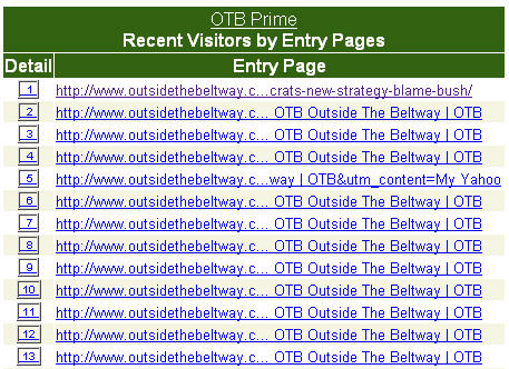 Until a couple of weeks ago, the URLs all looked like the first one, making it easy to see which pages people were visiting. Now, they’re mostly giving me crap. I can mouse over the URLs and get the entry pages but it’s obviously much less convenient.
