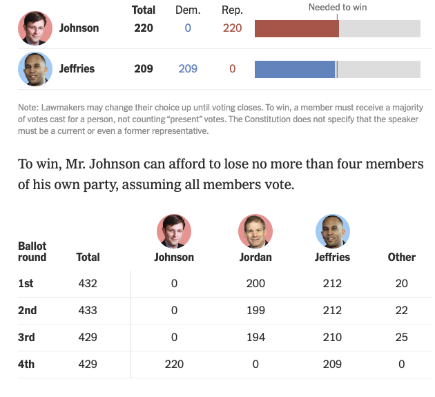 Needless to say I would rather have seen Representative Jeffries elected Speaker with the support of a handful of Republicans. I would also like free chicken wings every Thursday.