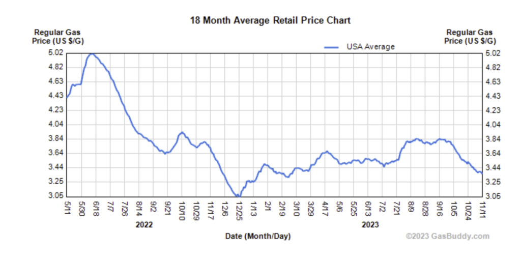 FWIW, here’s the gas price trend over the last 18 months via GasBuddy.
