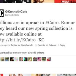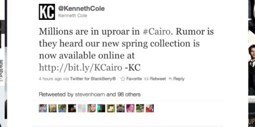 Kenneth Cole used a tongue-in-cheek reference to the Cairo protests to promote its new spring collection.
