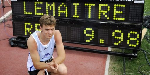 France’s Christophe Lemaitre became the first white man to run the 100 meters in under 10 seconds when he clocked 9.98 on Friday. Untold blacks have done it since 1968.