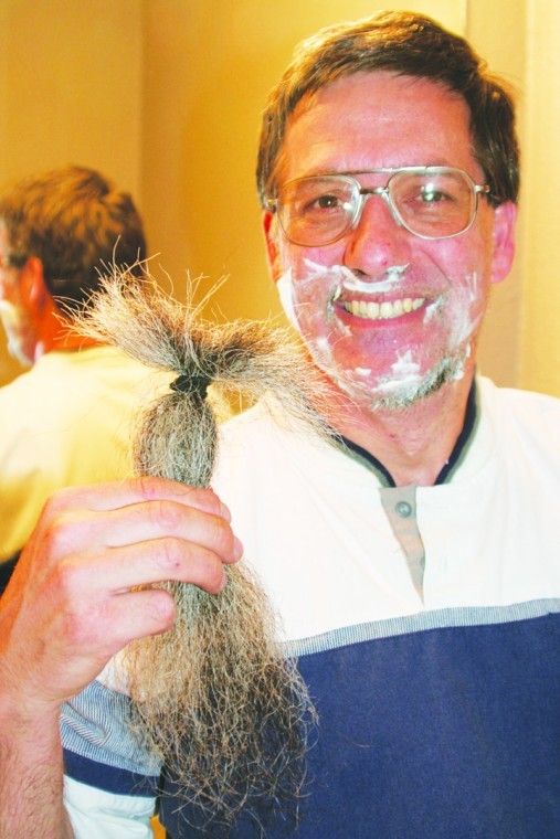 Middle school teacher Gary Weddle, 50, East Wenatchee, displays his cut beard while shaving the remaining stubble the evening of May 1. He completed a vow made nearly 10 years ago not to shave until Osama bin Laden was captured or proven killed.
