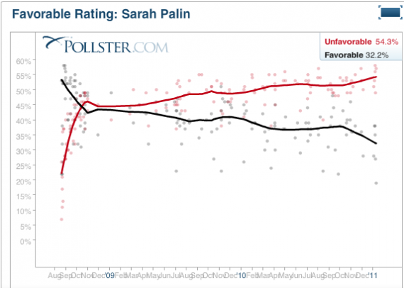 This, I think, this would be the reason you’re seeing establishment Republicans starting to hedge their bets when it comes to Sarah Palin. They want to win and, as this chart shows, it seems less and less likely that she has any chance of winning: