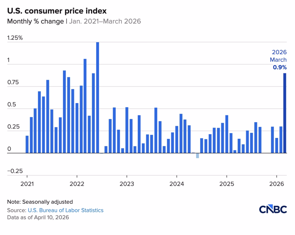 CNBC Reports: Consumer prices rose 3.3% in March, as energy prices spiked due to Iran conflict.