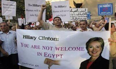 The above link shows Egyptian anti-Morsi demonstrators telling Hillary she’s not welcome there. Way to go Hillary!