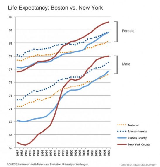 One has to also think that the influx over the past decade of young, well-off, high-earning people, especially in Manhattan proper has some impact on all of this. All in all, though, it’s somewhat of a surprise. After all, wouldn’t one expect life expectancy to be higher someplace out West?