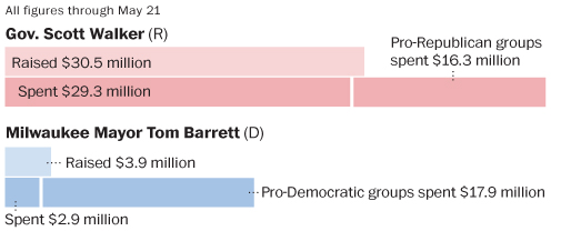Doug: Your analysis misses a couple things. There is a difference between fundraising and spending. That difference speaks to the bigger problem Dems in Wisconsin. The Walker fundraising was specifically targeted at the recall. And that fundraising accounted for ~2/3 of the media burn.