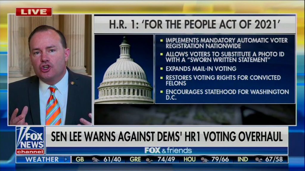 MIKE LEE: “I think I disagree with every single word in HR1, including the words ‘but,’ ‘and,’ and ‘the.’ Everything about this bill is rotten to the core. This is a bill as if written in hell by the devil himself. This takes all sorts of decisions that the federal government really has no business making. It takes them away from the states, makes them right here in Washington D.C. by Congress.