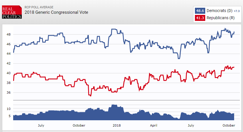 - In the RealClearPolitics average, Democrats ( 48.6%) have a +7.3 point lead over Republicans (41.3%), which is slightly below where it stood last week;