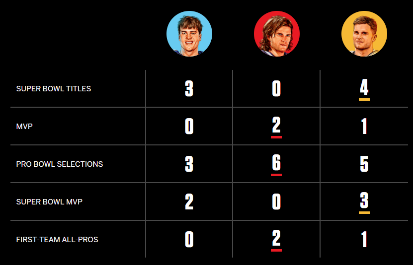 From a big-picture view, Brady’s accolades are not comparable. His seven Super Bowls are the most all-time, as are his five Super Bowl MVP awards. Brady has thrown more completions, passing yards, and touchdowns than any other quarterback that has come before, and he is also the winningest player in NFL history. And that’s just the tip of the iceberg.