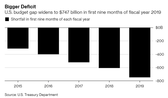 Meantime, the federal debt has ballooned to $22 trillion. Despite healthy economic growth, the federal deficit for this fiscal year has reached $747 billion with two months to go — a 23 percent increase from the year before.