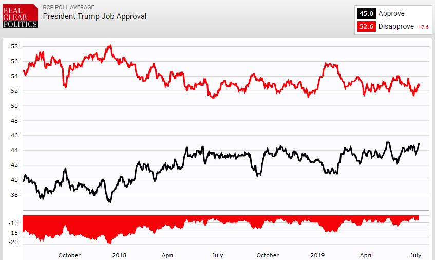 I’m not saying Trump is guaranteed to lose, but if he stays in the 40-45% job approval range it isn’t going to be easy for him to win.