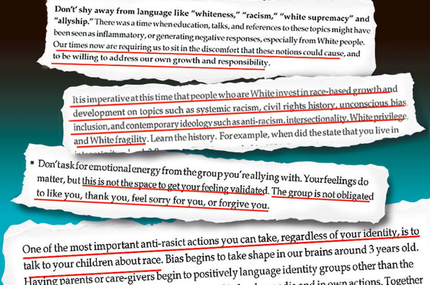 According to a trove of whistleblower documents I’ve reviewed, the training begins with the premise that “virtually all white people contribute to racism” and hold narratives that “don’t support the dismantling of racist institutions.” Therefore, the trainers argue, white federal employees must “struggle to own their racism” and “invest in race-based growth.”