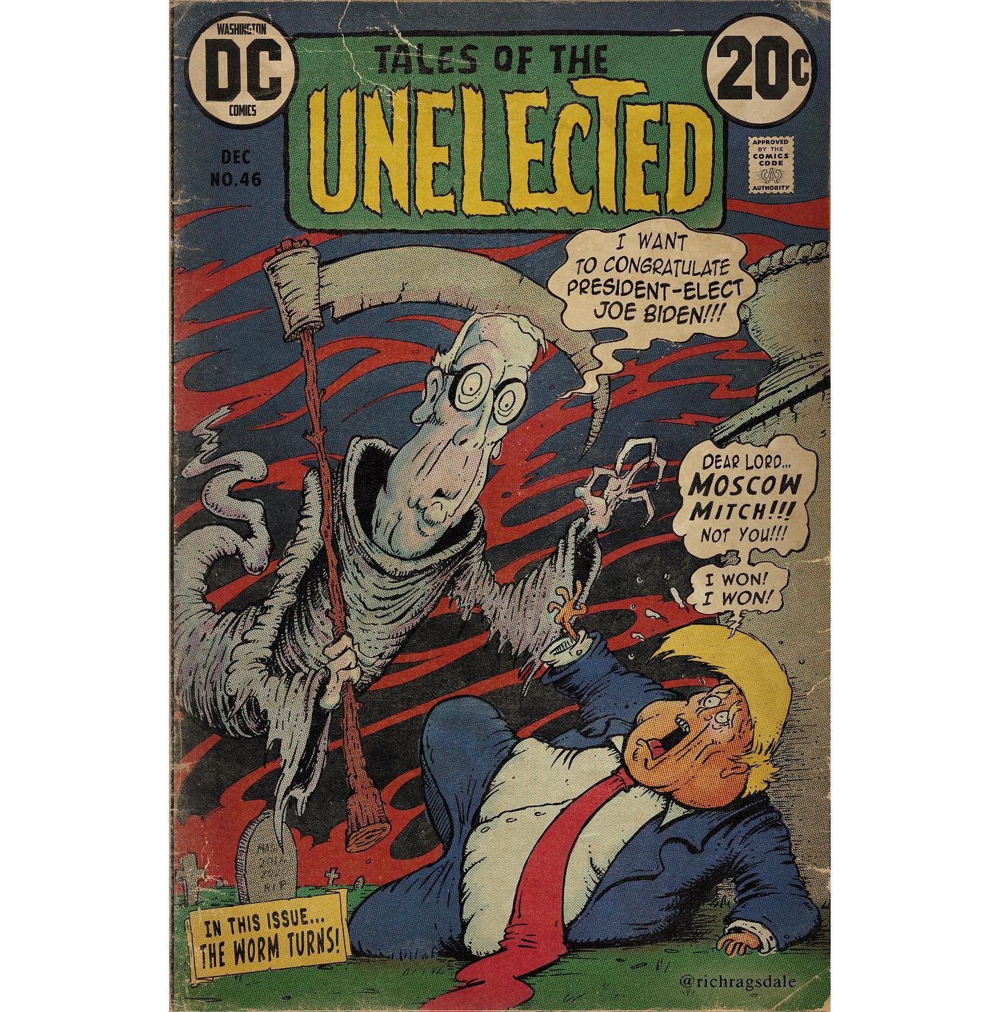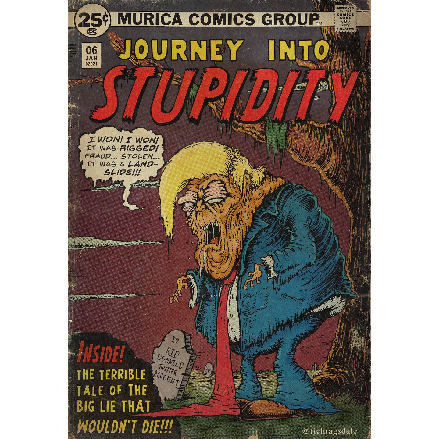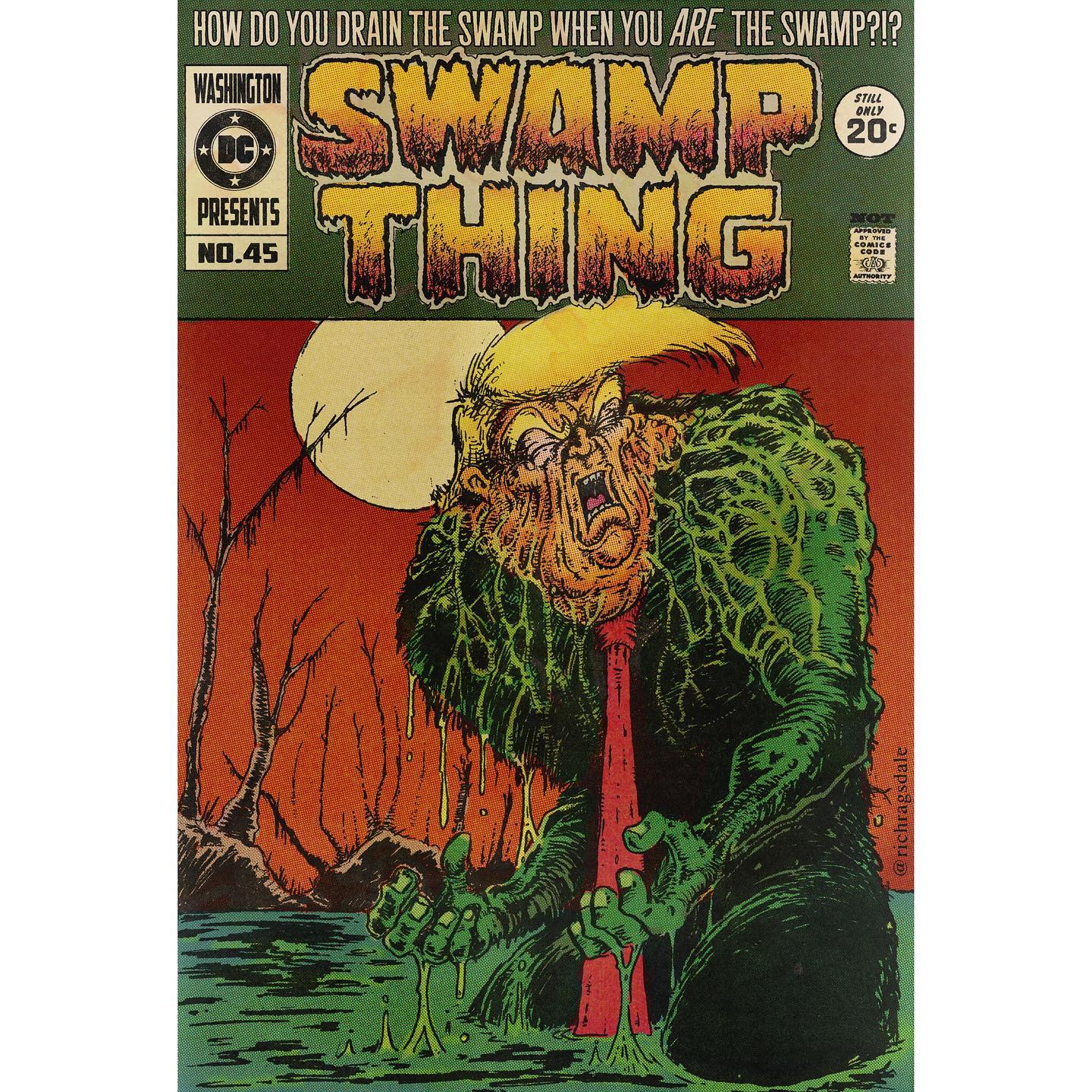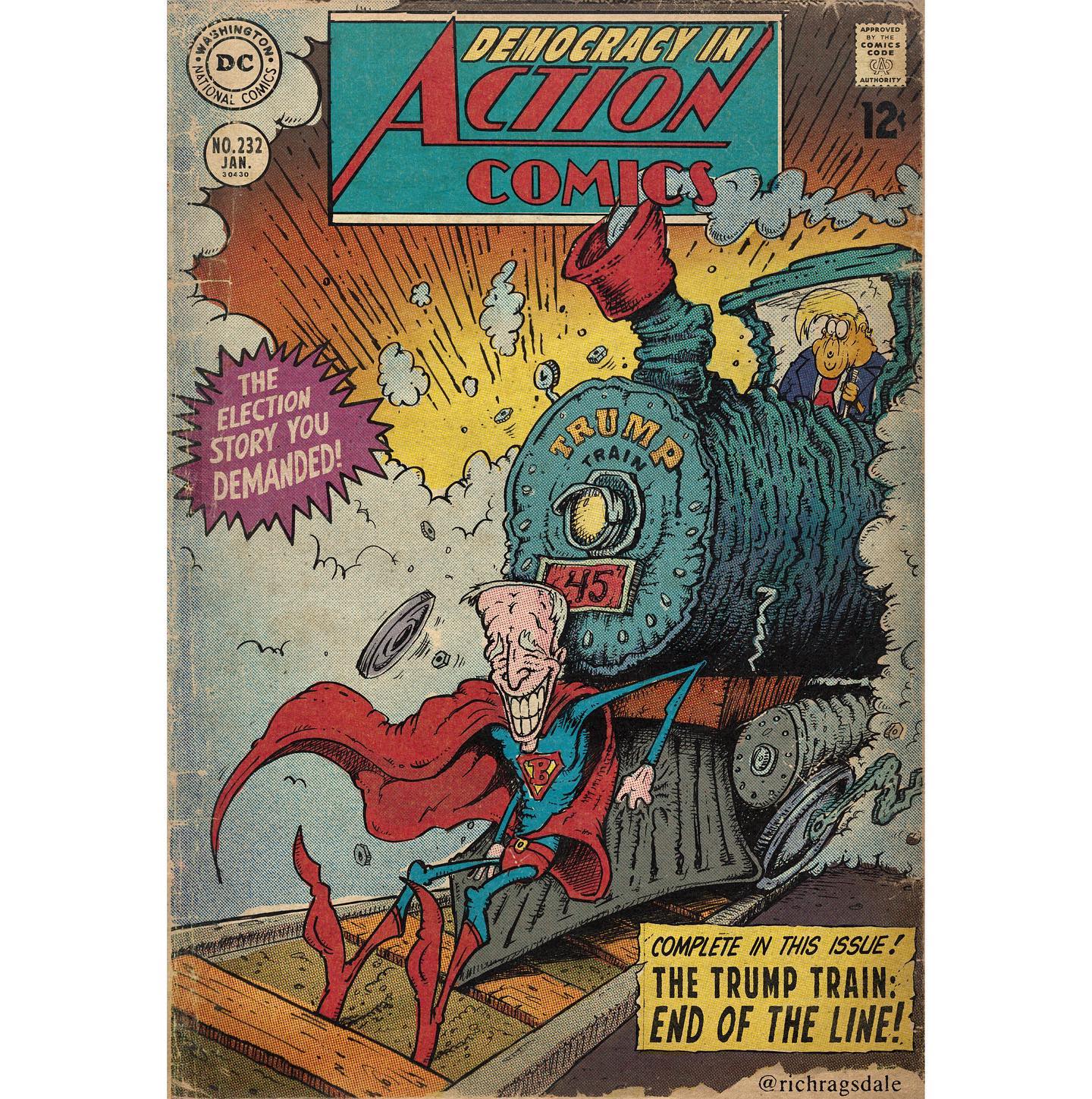 Looking to find a source for attribution aside from the @RichRagsdale* (I found it posted here), I stumbled down a rabbit hole of Trump-themed takeoffs of classic comic book covers.