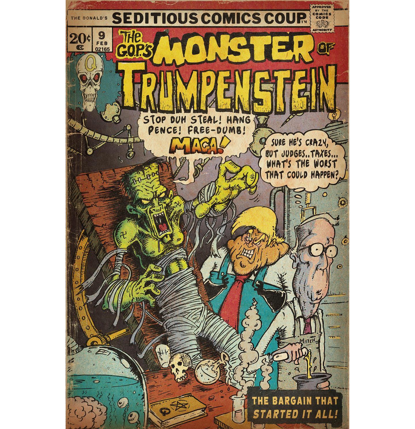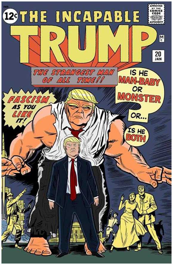 I’d be open to set up a go-fund-me page to pay the artists to actually produce the comic books, so they can then be donated to the Cheeto Benito presidential library.