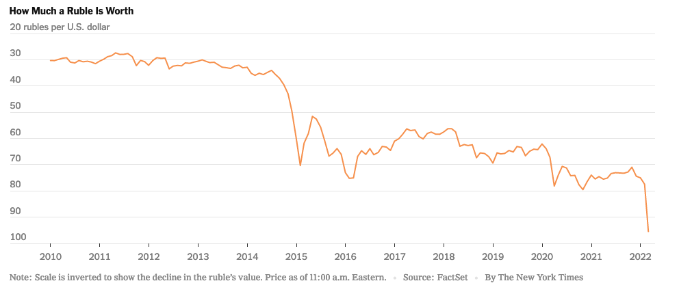 Russia just doubled interest rates from 9.6% to 20%. Overnight. For context, a half a point rise by the Fed would be considered major.
