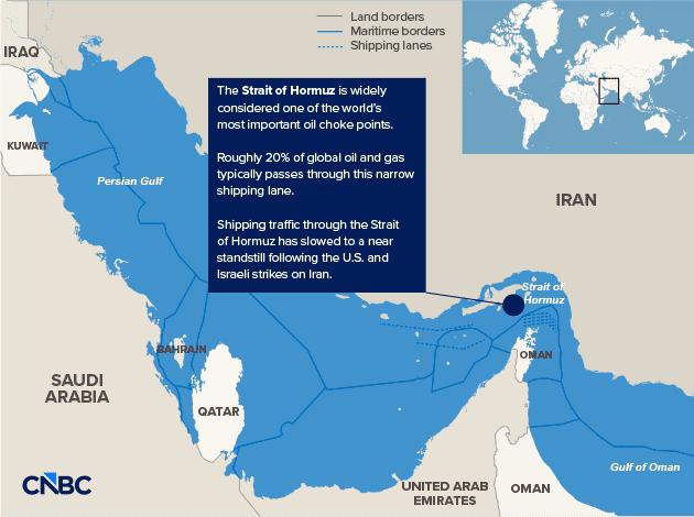 Brent, the international oil benchmark, broke $94 per barrel as it jumped more than 9% to its highest level since late 2023.