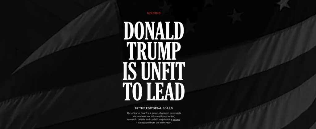 Endorsement is not the same as condemnation, is it? These editorial boards aren’t stating they prefer Biden on policy or temperament. They are stating, with receipts, that Trump represents a threat to the nation.