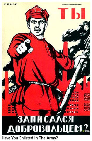 Here’s one of the posters, which is essentially a recruitment poster for the Red Army since it asks, in Russian of course, “Have You Enlisted?”