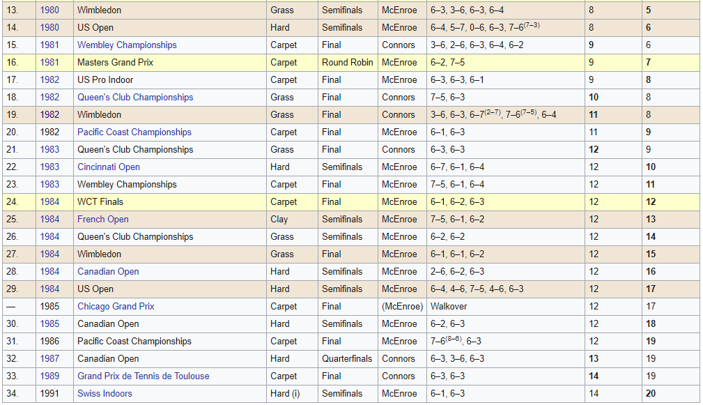 So, for example, if you look at the Connors-McEnroe rivalry it looks like McEnroe easily got the best of it: