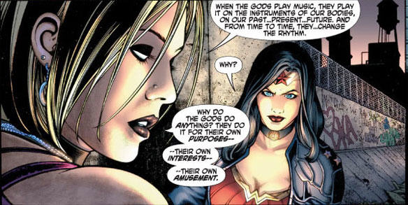 The costume ties into an alternative history for the character devised by J. Michael Straczynski, the new writer of the series, and into a quest by DC to shine a critical and creative spotlight on the heroine, who stands with Superman and Batman in its primary triumvirate of superstars, despite her series’s modest sales.