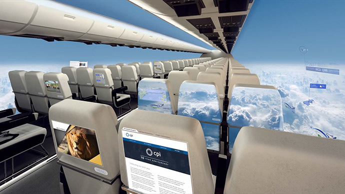 If a British aerospace company gets its way, you could one day have a chance to fly in a passenger plane where the windows are replaced by wraparound view screens that show you what’s outside the plane all around you: