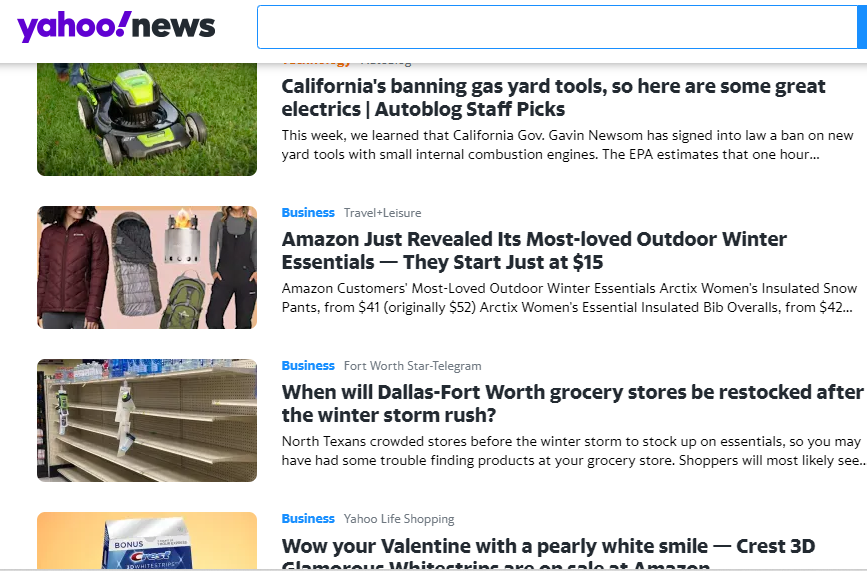 Even actual news that shows up in Yahoo’s feed is typically not that useful, due to the treatment that it received from the generating publication.