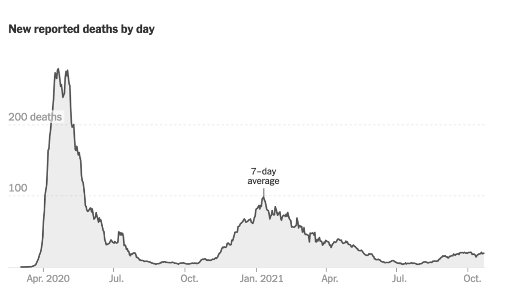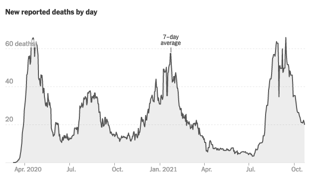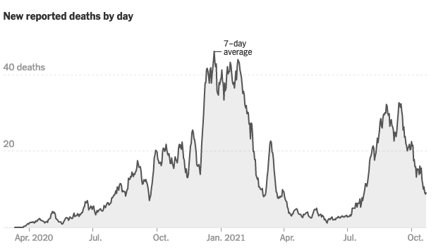 First, note the use of cumulative and note population-adjusted numbers (that’s sloppy analysis at best and is more likely just plain dishonest analysis). Second, the fact the deaths have been this summer is important given, as noted, the fact that there is now a vaccine.