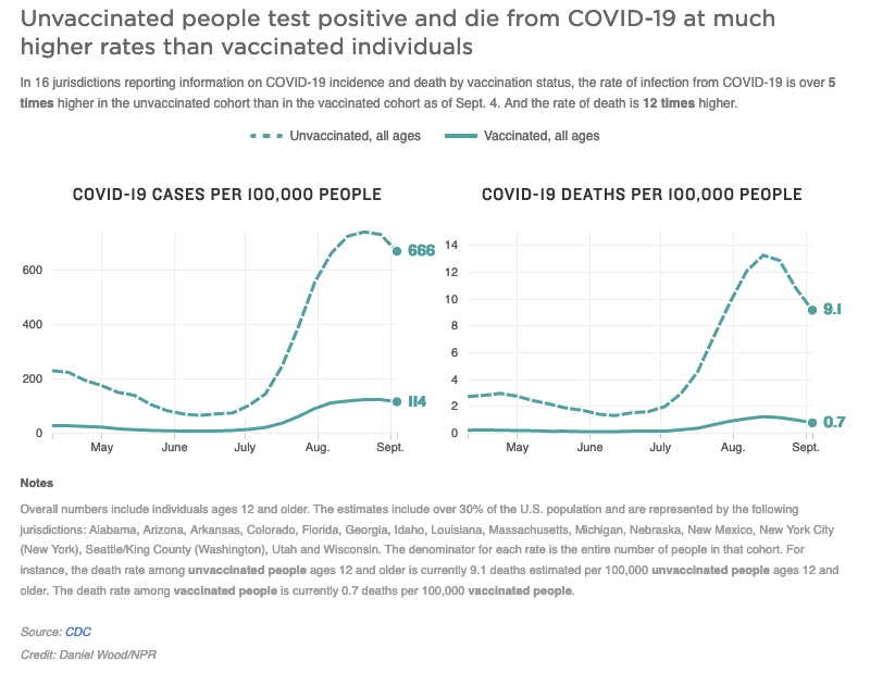 Note the following comparing the vaccinated and unvaccinated in terms of infection rates and death: