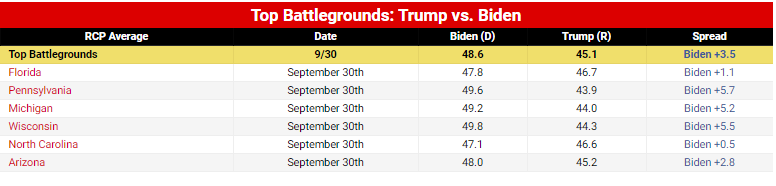 But Team Biden can concentrate funds and attention on PA+4; whereas Trump needs to fight to hold on in other states as well (Ohio, Georgia, Iowa, even Arkansas and Texas) and with a campaign team that looks a mess.