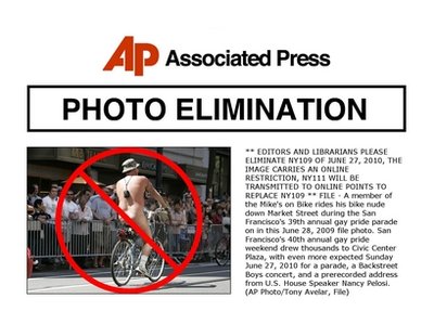 ** EDITORS AND LIBRARIANS PLEASE ELIMINATE NY109 OF JUNE 27, 2010, THE IMAGE CARRIES AN ONLINE RESTRICTION, NY111 WILL BE TRANSMITTED TO ONLINE POINTS TO REPLACE NY109 ** FILE – A member of the Mike’s on Bike rides his bike nude down Market Street during the San Francisco’s 39th annual gay pride parade on in this June 28, 2009 file photo. San Francisco’s 40th annual gay pride weekend drew thousands to Civic Center Plaza, with even more expected Sunday June 27, 2010 for a parade, a Backstreet Boys concert, and a prerecorded address from U.S. House Speaker Nancy Pelosi. (AP Photo/Tony Avelar, File)